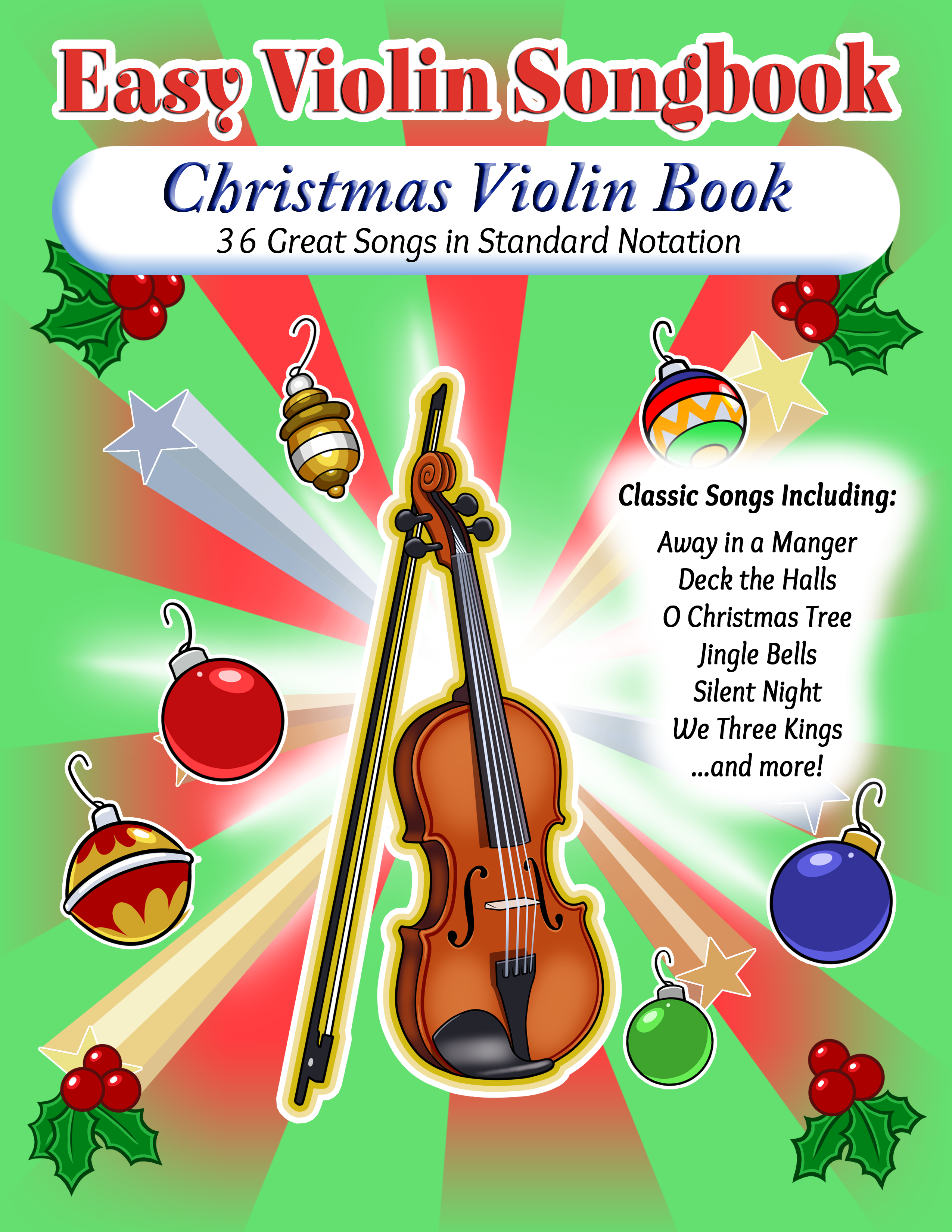 Easy Violin Songbook perfect for beginners, printed in standard notation. This 75-page violin book features sheet music for 36 classic Christmas songs.